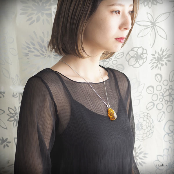 /インターナショナルアンバー協会認定正規品/原産地:リトアニア共和国/琥珀サイズ:32×20×h17mm/貴金属:Silver925/真鍮50cmチェーン付属(アジャスター5cm含む) /この商品は1点ものです。