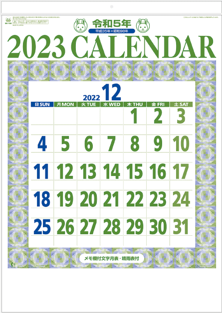 カレンダー 2023 壁掛け シンプル 3色文字月表 昔ながらの定番カレンダー カレンダー2023 令和5年 壁掛けカレンダー シンプルカレンダー