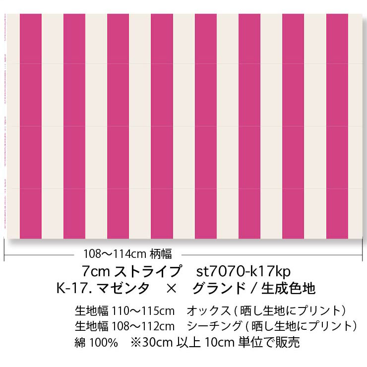 7センチ 太ストライプ 生地 おしゃれ オックス生地 7センチ マゼンタ ピンク レッドパープル 太い ボーダー柄 黄色 かわいい 女の子 やや厚手 生成り色 晒し白 シーチング生地 11号帆布 ev 布 綿100% 10cm単位 北欧風 テーブルクロス カーテン k-16 k-17 商用利用可