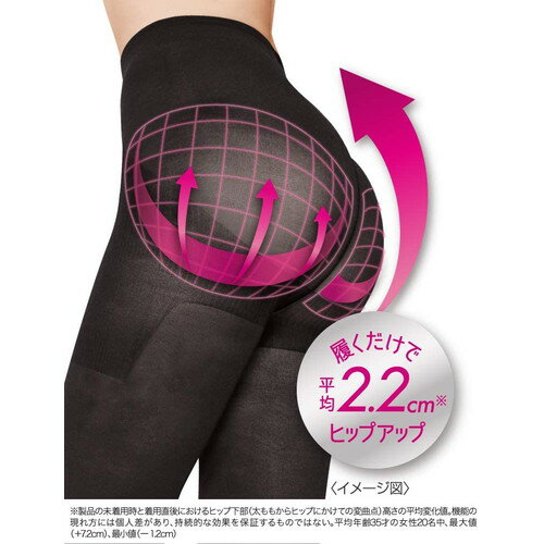 ヒップブラ発想で、グイッと美尻 <一日中美脚&骨盤ケア> ●骨盤3Dサポートテーピング技術 ●ポイント1・・・フロントクロスのテーピングで、骨盤まわりを引き締めながら、お腹も押さえてサポート。