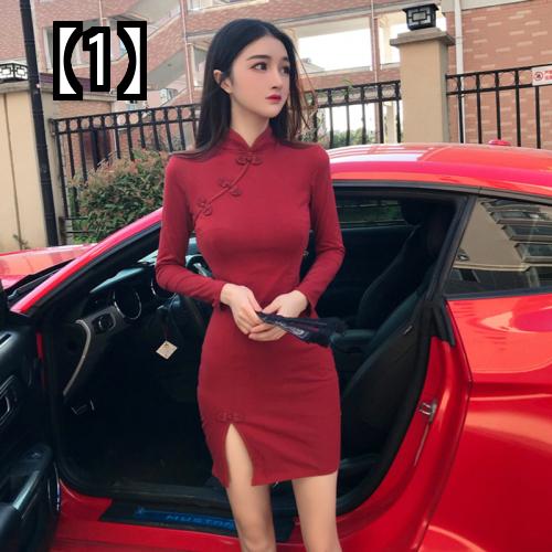 チャイナドレス ミニ おしゃれ スリット 深め タイト フィット 長袖 半袖 レディース 春夏秋 大きいサイズ 華やか 大人 ワンピース 衣装 赤 ピンク 黒