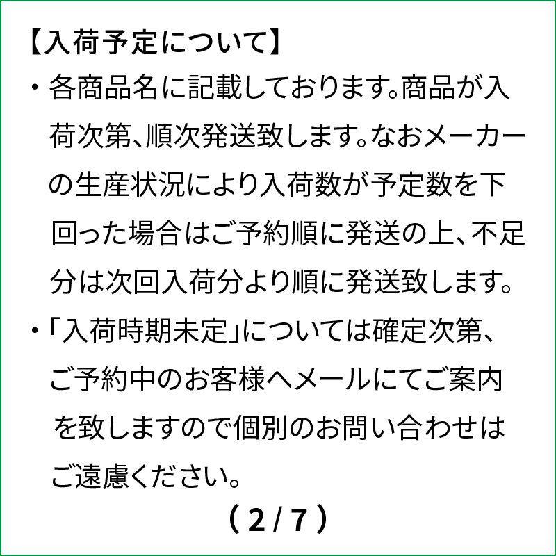 ご注文タイミングにより欠品し、お取り寄せにお時間を頂く場合やお手配が出来ずにやむを得ずキャンセルさせて頂く場合がございます。