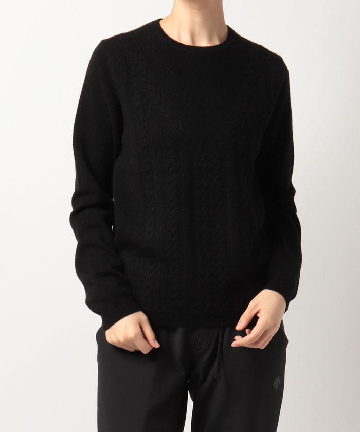 ケーブルと天竺で編み分けることによりエレガンスが際立つカシミヤセーターになっております。