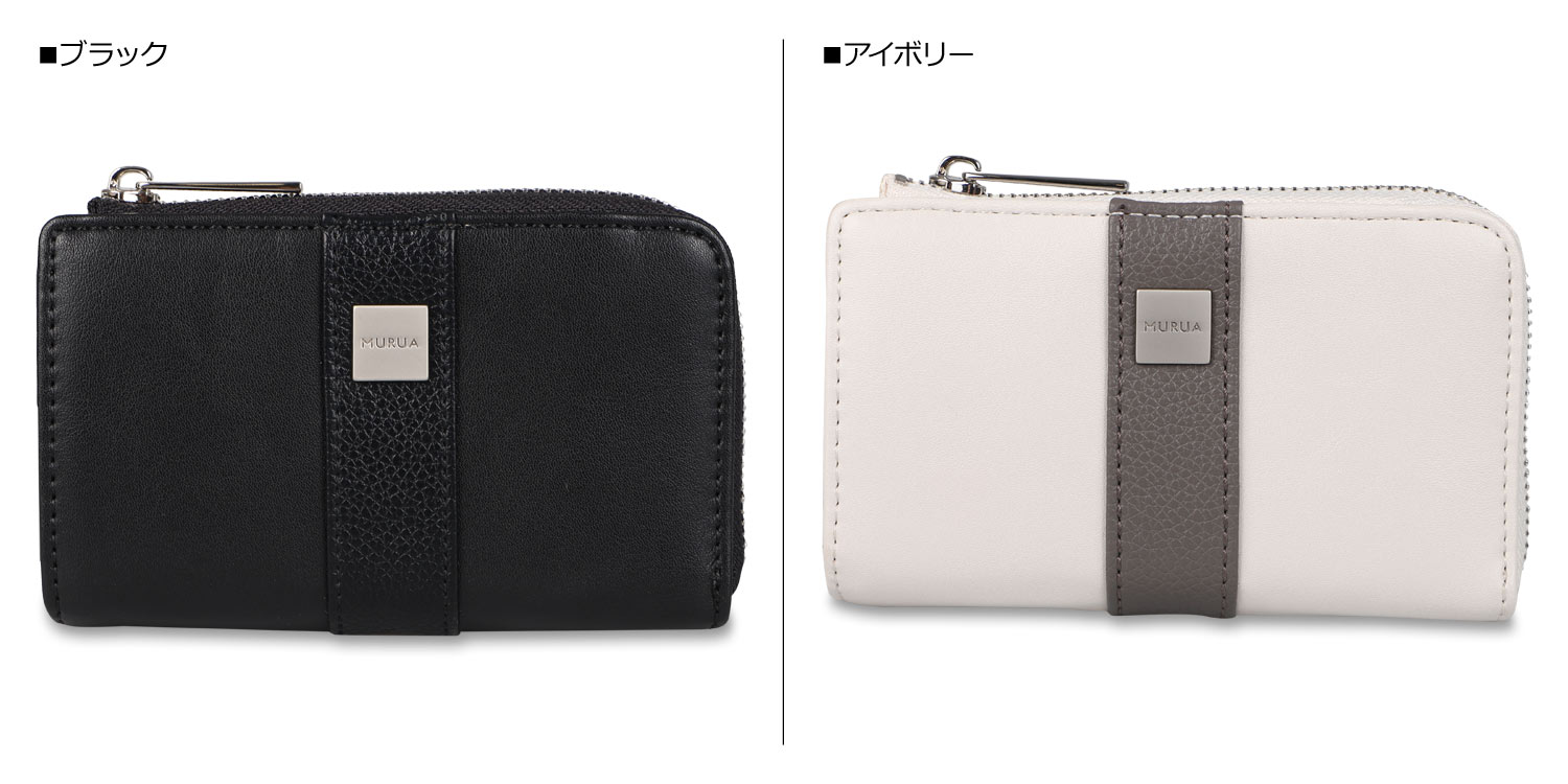 ブランド名 / 商品名 MURUA ムルーア / LINE MR-W1043 カラー ブラック:BLACK(BK) アイボリー:IVORY(IVO) 素材 / 仕様 本体:合成皮革 裏地:ポリエステル 開閉方法:ファスナー式 内側:フリーポケット×1 キーホルダー×5 キーリング×1 外側:フリーポケット×1 重量:90g 生産国 CHINA サイズ 幅:12cm×高さ:7cm×マチ:2cm こちらの商品は、メーカー公式の採寸基準で計測しています。