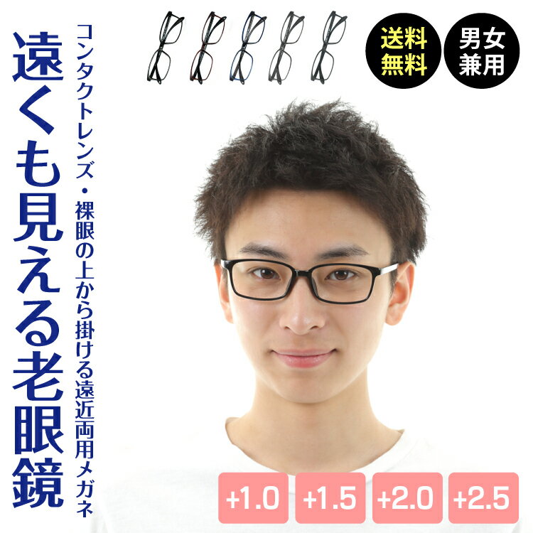 【遠くも見える老眼鏡】遠近両用 スクエア 軽量フレーム 軽い 形状記憶 黒縁 +1.0 +1.5 +2.0 +2.5 老眼鏡 リーディンググラス シニアグラス 遠視 老眼 裸眼 度なし 伊達 だて ダテ メガネ レディース メンズ 男性 女性 遠く ぼけない ぼやけない