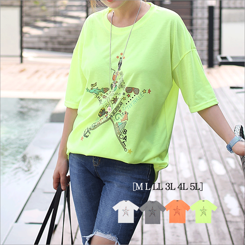 大きいサイズ レディース トップスロング カットソー ロングTシャツ プリント