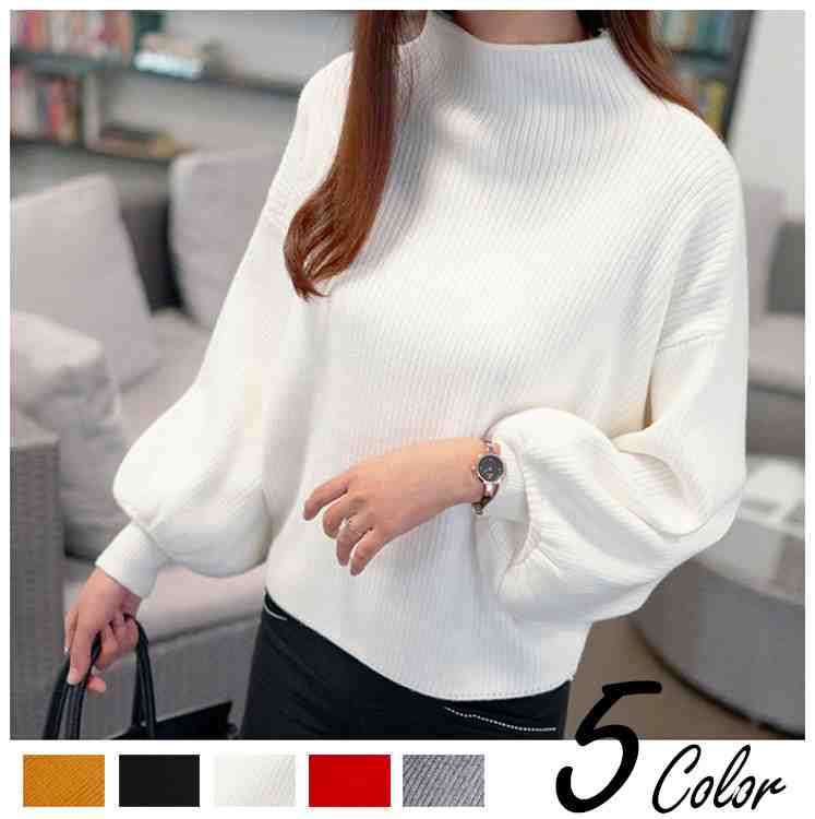 レディース ニットセーター トップス パフスリーブ バルーン袖 ハイネック ゆったり オシャレ【大きいサイズ レディース 夏秋 tシャツ ゆったり uv インナー 無地 ワンピース ドルマン チュニック Vネック shirt】