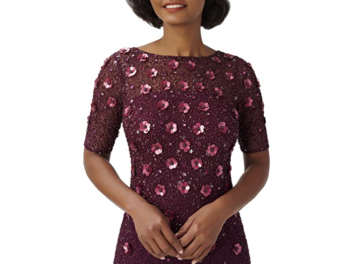 (取寄) アドリアナ パぺル レディース Adrianna Papell women Long Beaded T-Shirt Dress Cassis